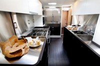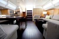 Alix offers a generous proportioned contemporary interior with stylish accommodation well suited to extended cruising, with a luxurious main saloon and galley area and spacious navigation system. Her wooden base furniture together with an indirect lighting and down light spotlight creates a warming atmosphere inviting guests to relax. Alix sports a highly efficient Bose stereo system connected to a LCD TV in each cabin and the saloon. Dining on board morning, noon and night is always a memorable, culinary delight either below deck or in the cockpit.