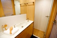 Alix accommodates up to 8 guests in luxurious style with large, inviting cabins accentuated by the warm of the wenge and oak interior. Alix master cabin with double accommodation, writing desk and settee and the three double cabins, all enjoying their own private ensuite facilities, offer a wonderful, restful night’s sleep.